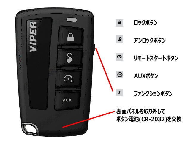 VIPER(バイパー)の5908/5808/5806/5706/5606/4706/3606に使用できる1ウェイ・リモコンです。